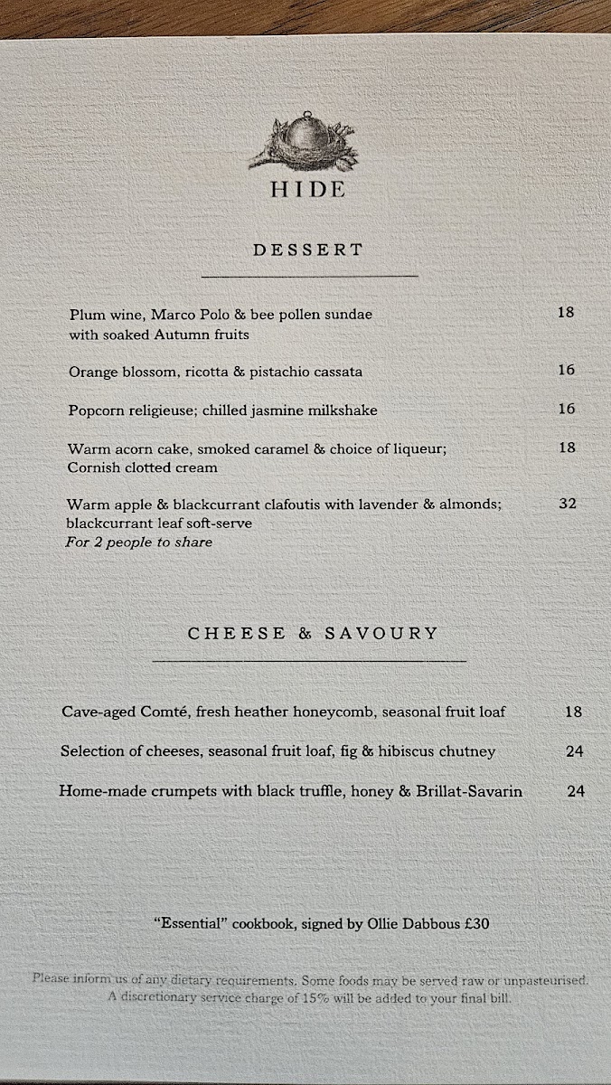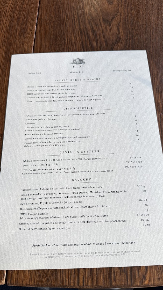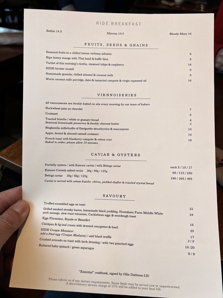 Welcome to HIDE - London W1J 7NB, an exquisite dining destination nestled at 85 Piccadilly, where culinary artistry meets elegant design. This Michelin-starred establishment is renowned for its seasonal offerings and thoughtful flavor profiles, making every visit a memorable experience. Guests rave about the breakfast menu, with highlights including a luxurious porridge topped with black truffle, and their exceptional Danish pastries that surprise with unique combinations like strawberry and tonka bean.